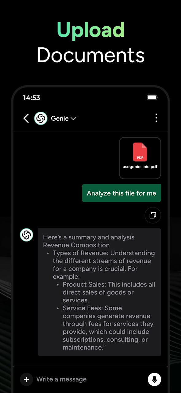 Explore the enhanced features of GPT Chatbot AI – Genie, including interactive PDF conversations, in-depth image analysis, webpage summarization, AI-powered keyboard, Instagram caption generation, selfie analysis, and interactive language learning, offering a comprehensive AI chat experience.